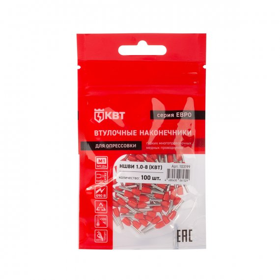 Технические характеристики КВТ Наконечник штыревой втулочный изолированный серия ЕВРО, 103199