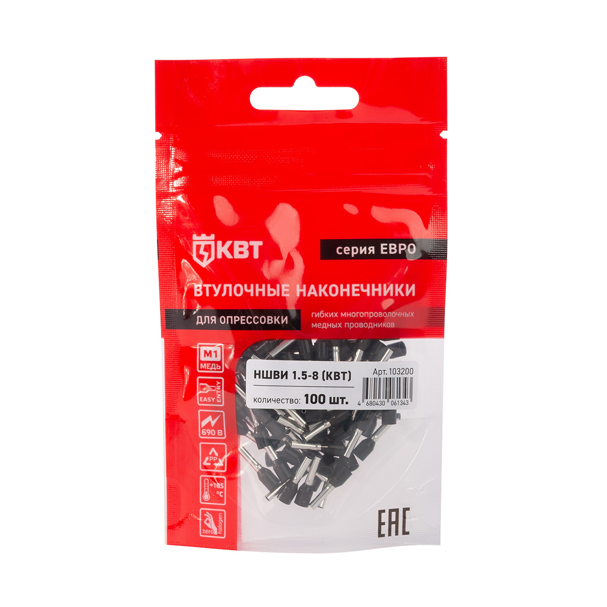 Технические характеристики КВТ Наконечник штыревой втулочный изолированный серия ЕВРО, 103200