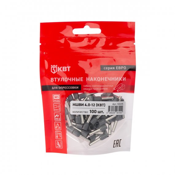 Технические характеристики КВТ Наконечник штыревой втулочный изолированный серия ЕВРО, 103205