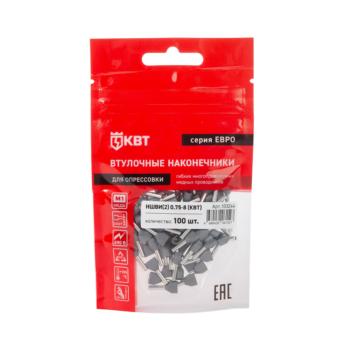 Наконечник штыревой втулочный изолированный НШВИ(2) 0,75-8 серия ЕВРО (КВТ)