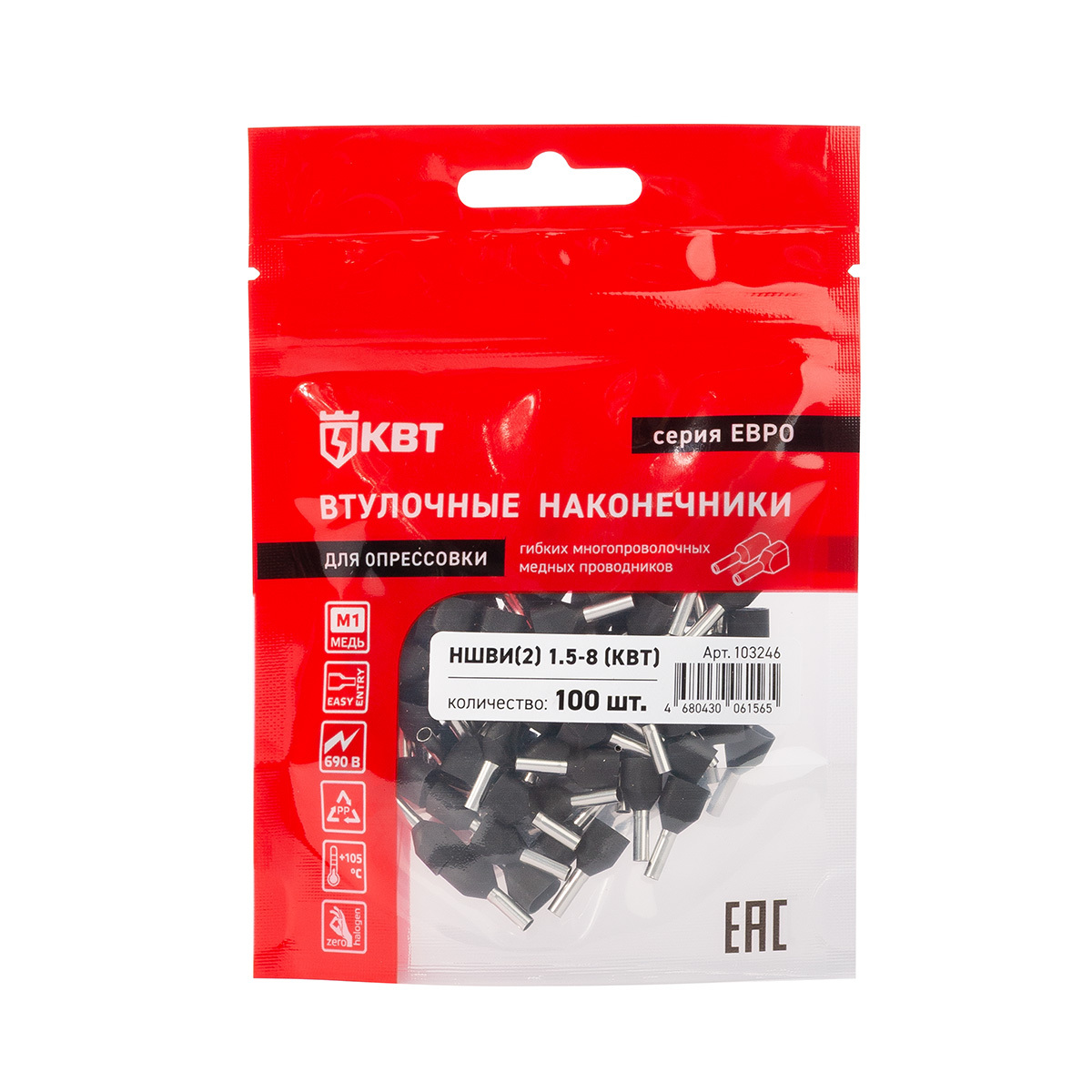 Технические характеристики КВТ Наконечник штыревой втулочный изолированный серия ЕВРО, 103246