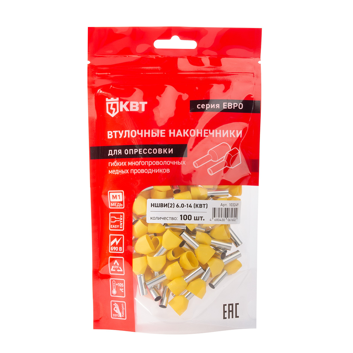 Технические характеристики КВТ Наконечник штыревой втулочный изолированный серия ЕВРО, 103249