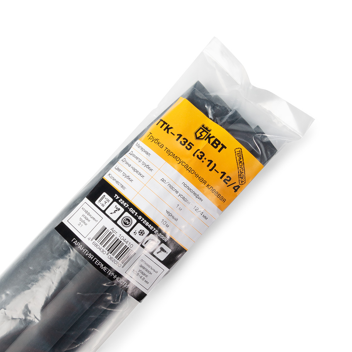КВТ Трубка термоусадочная клеевая ТТК-135 (3:1)-12/4 черн, 104410