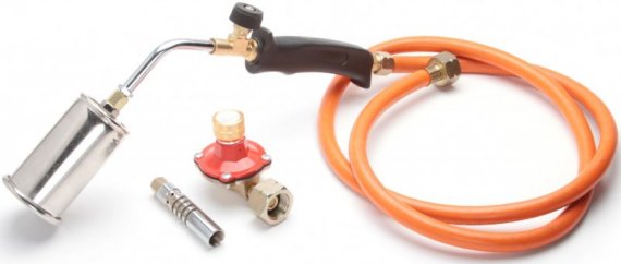 Горелка КВТ ПГ представляет собой рукоятку с вентилем для регулировки расхода газа и прекращения его подачи, изогнутого наконечника, на конце которого устанавливается инжектор и насадка.