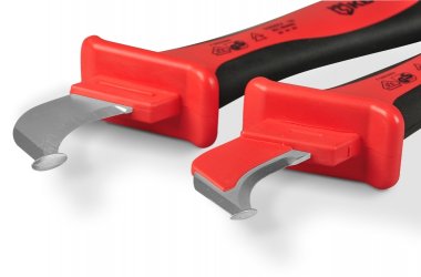 Ножи монтерские диэлектрические с «пяткой» НМИ-01 предназначены для резки и разделки кабелей и проводов при работе в электроустановках напряжением до 1000В переменного тока промышленной частоты.