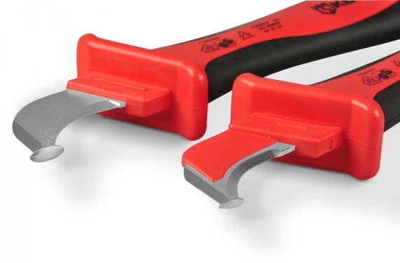 Частично изолированное изогнутое лезвие с «пяткой» для легкого вскрытия оболочки кабеля без риска повреждения жилы