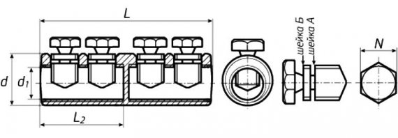 Каждый болтовой соединитель является мультиразмерным и рассчитан на диапазон сечений кабеля