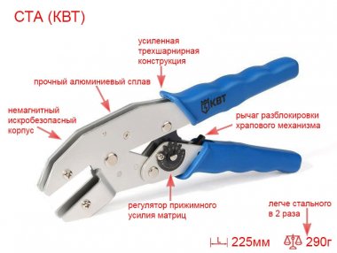 Пресс-клещи СТА-14 (КВТ) предназначены для опрессовки неизолированных разъемов и наконечников (автоклемм) под двойной обжим