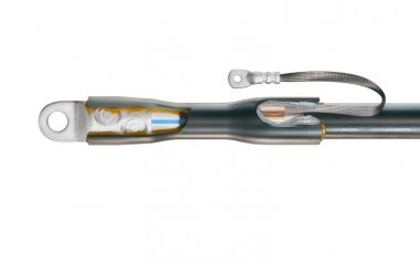 Комплект состоит из болтового наконечника с рядным расположением болтов, термоусаживаемой манжеты с клеевым слоем на болтовой соединитель, защитного кожуха с клеевым слоем и непаяной системы заземления