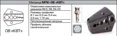 Номерные матрицы для опрессовки коаксиальных разъемов для телевизионных кабелей RG 6, RG 58, RG 59, RG 62 - МПК-08