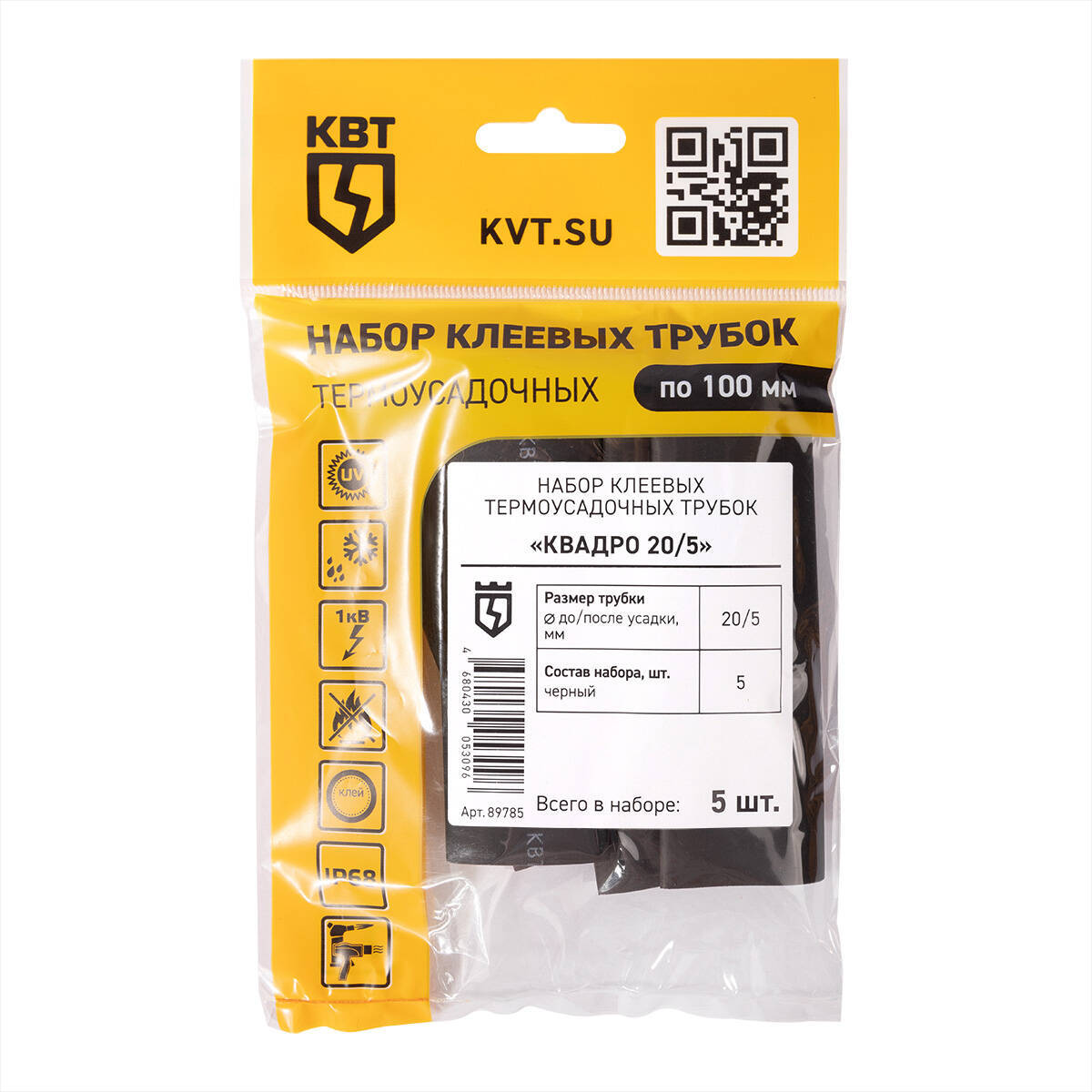 Технические характеристики КВТ Набор термоусадочных трубок Квадро 20/5, 89785