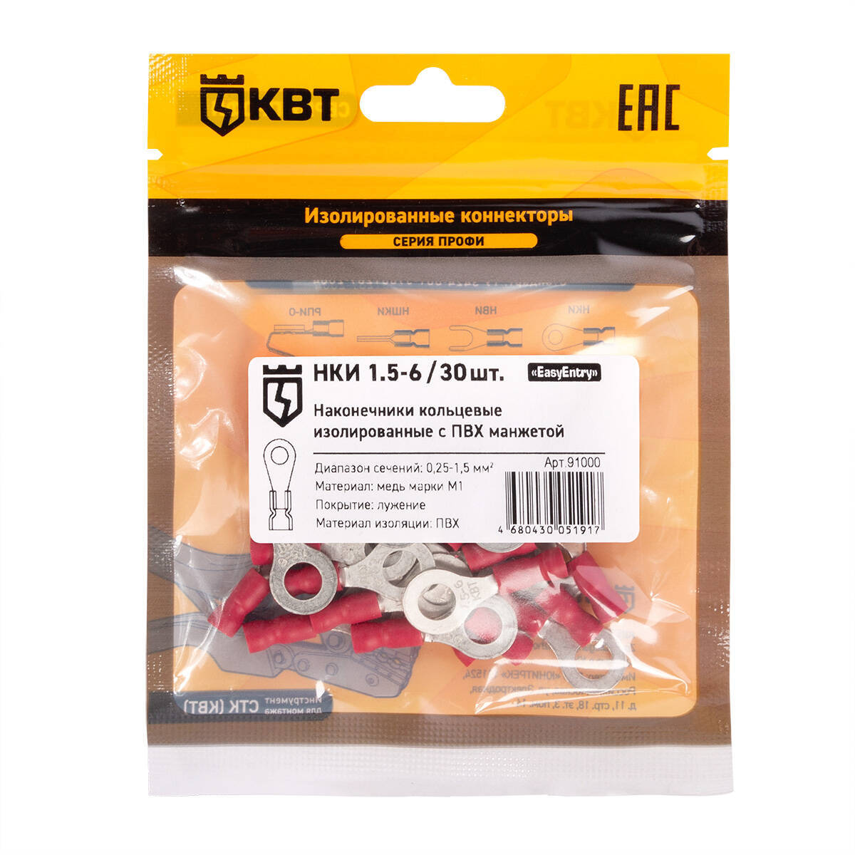 Наконечник кабельный кольцевой изолированный НКИ 1.5–6 (30 шт) (КВТ)