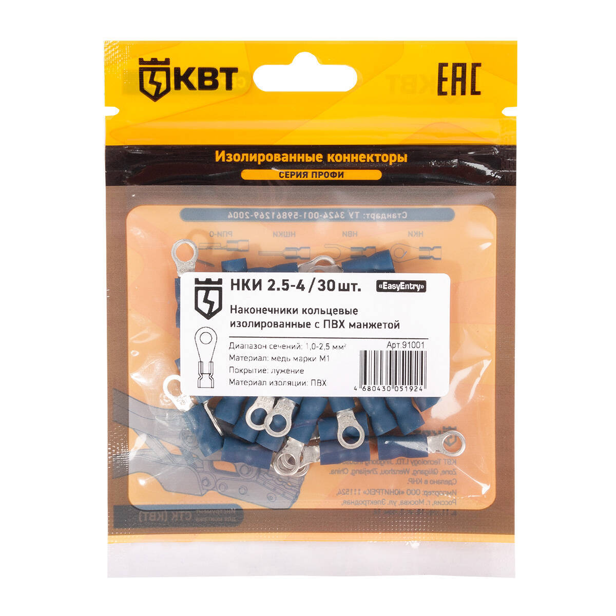 Наконечник кабельный кольцевой изолированный НКИ 2.5–4 (30 шт) (КВТ)
