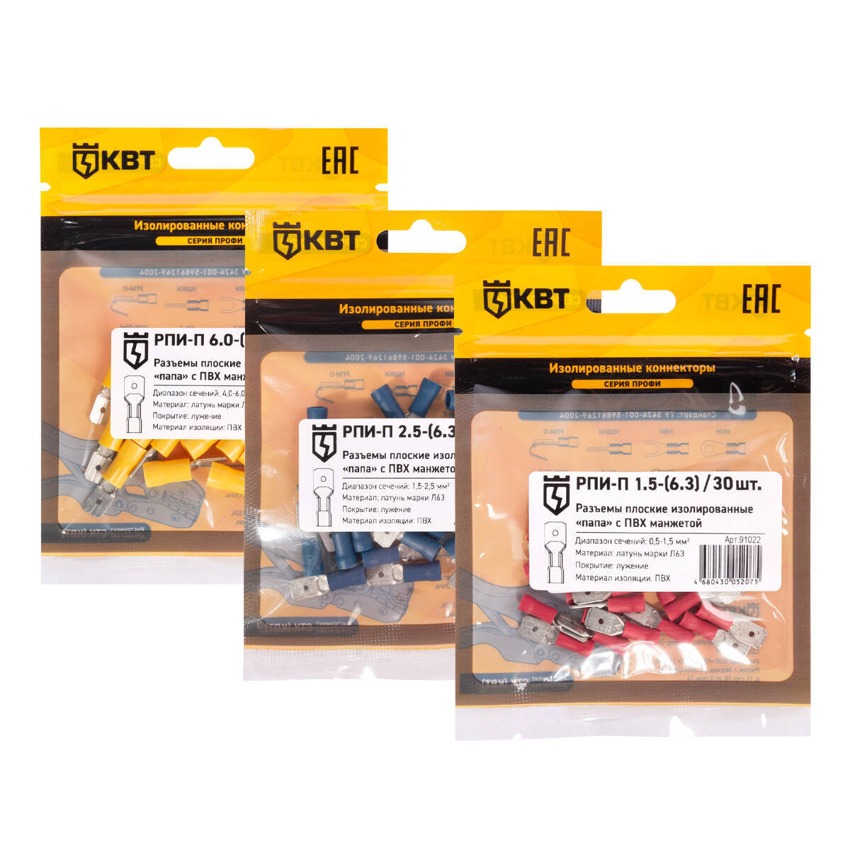 Технические характеристики КВТ Разъем кабельный плоский изолированный «папа» РПИ-П 6.0-(6.3), 91024