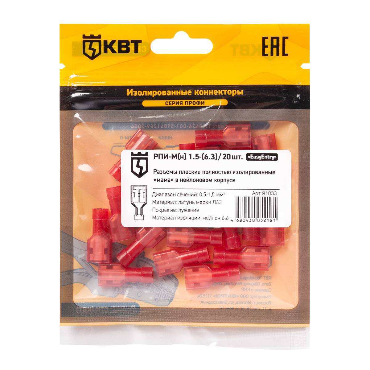 Технические характеристики КВТ Разъем плоский полностью изолированный «мама» РПИ-М(н) 1.5-(6.3), 91033