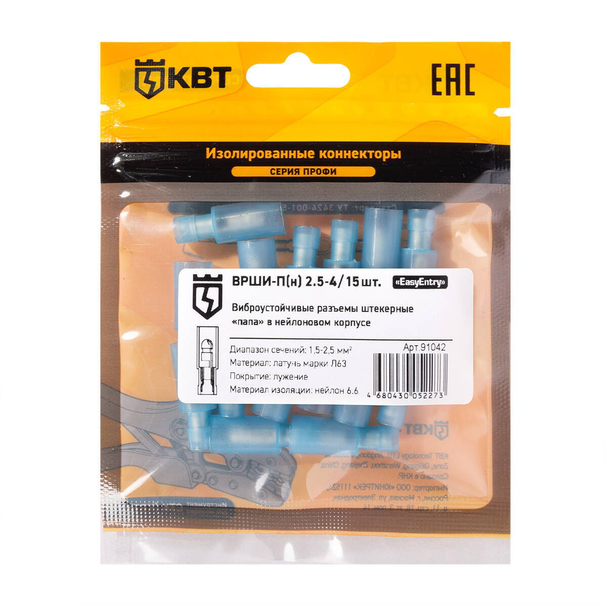 Технические характеристики КВТ Разъем штекерный изолированный «папа» ВРШИ-П(н) 2.5-4, 91042