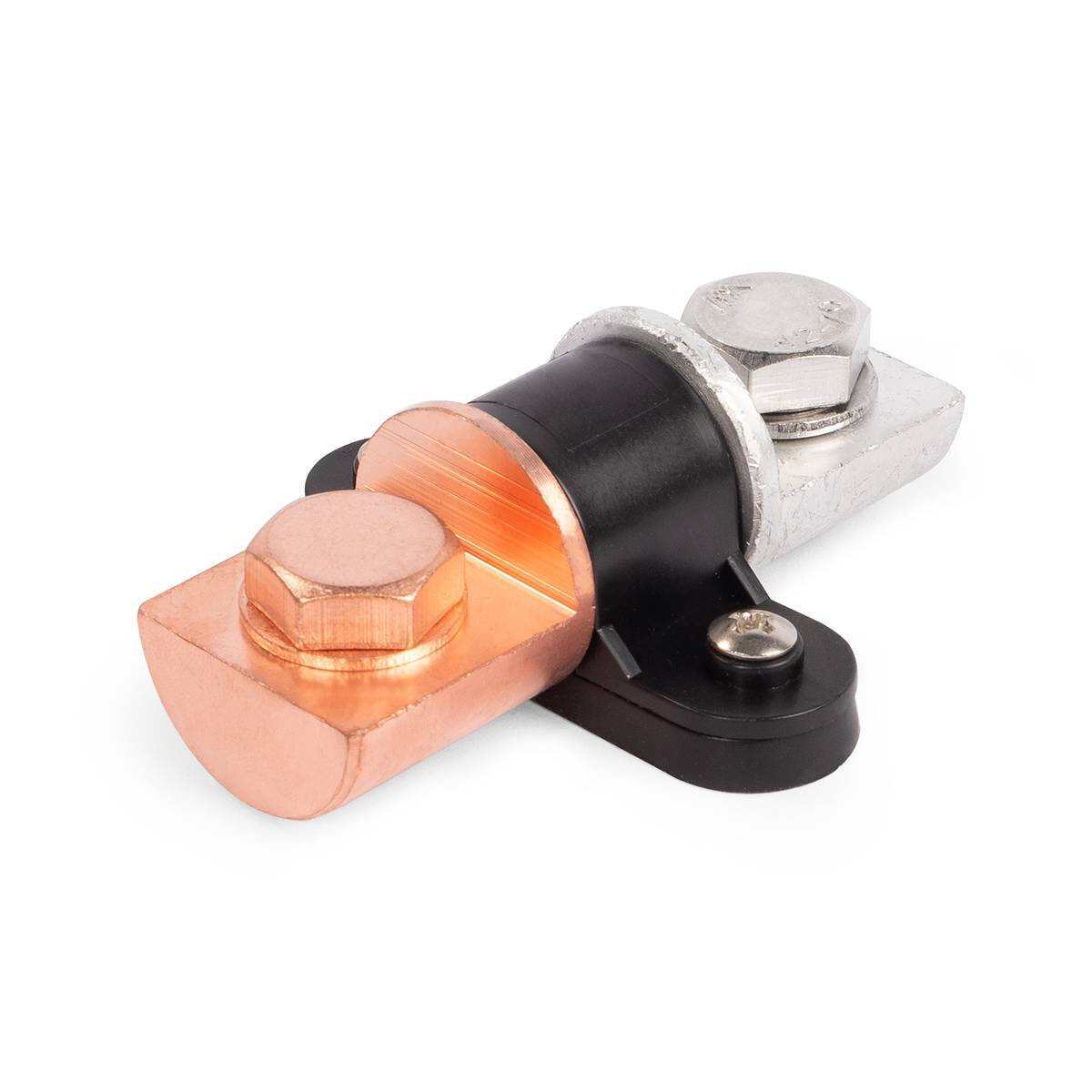 - Цельная и несварная конструкция алюмомедного соединителя предотвращает образование гальванической пары между медью и алюминием