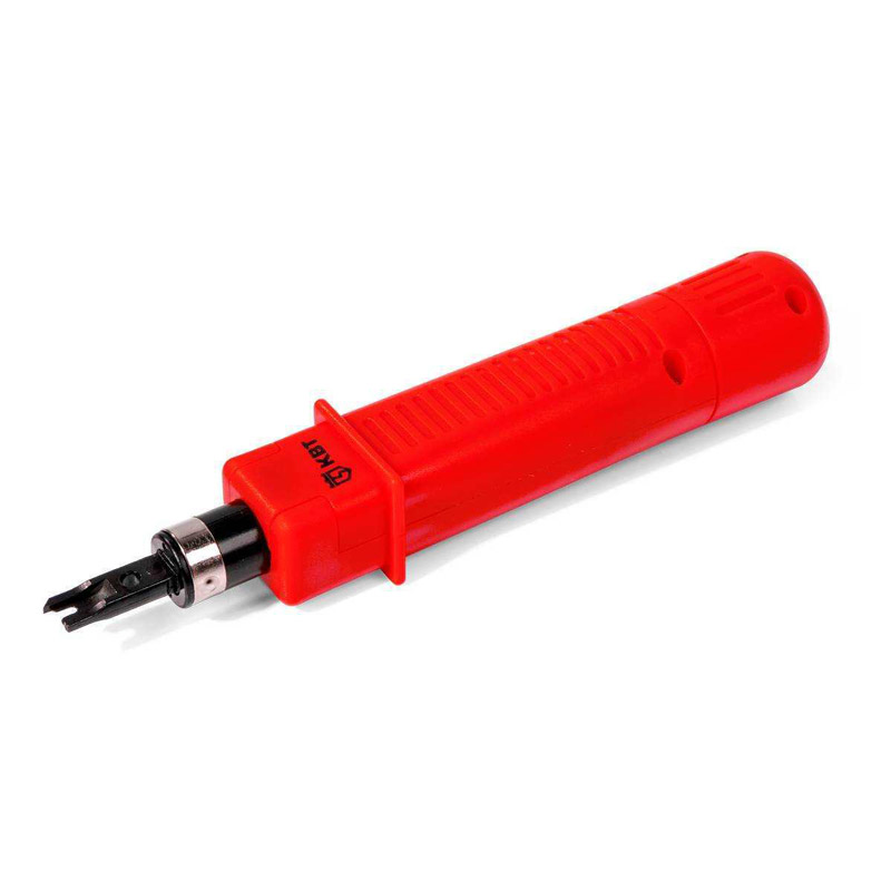 Функциональный инструмент 85737 компании КВТ служит для оперативной и качественной заделки кабеля витая пара на кроссах, патч-панелях, розетках и модулях. Корпус инструмента производится длиной 180 мм из прочного пластика.