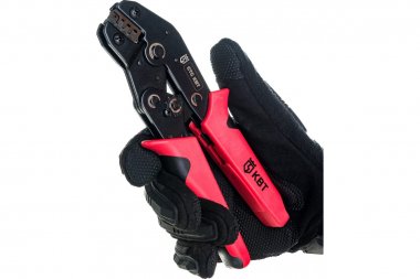 Пресс-клещи КВТ СТС-Д 85740 представляет собой универсальный инструмент для опрессовки широкого ряда клемм для радиоэлектроники, клемм Dupont, а также для неизолированных разъемов и наконечников (автоклемм) под двойной обжим по жиле и изоляции. Храповой механизм обеспечивает блокировку обратного хода до завершения полного цикла опрессовки. Изделие оснащено регулятором прижимного усилия матриц. Двухкомпонентные эргономичные рукоятки с небольшим раскрытием обеспечивают комфорт при работе и не скользят в руках оператора. Воронение рабочей поверхности защищает инструмент от коррозии.