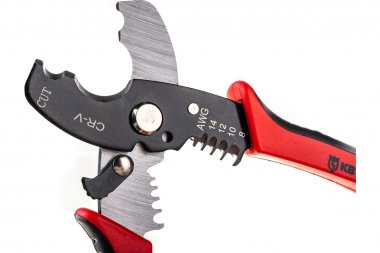 Кабельные ножницы КВТ MC-06 85934 предназначены для резки и зачистки проводов. Инструмент выполнен из качественной хромованадиевой стали, что обеспечивает высокую прочность, надежность и долговечность. Эргономичные двухкомпонентные рукоятки комфортны при работе и имеют блокиратор, что предотвращает открывание и обеспечивает удобную транспортировку.