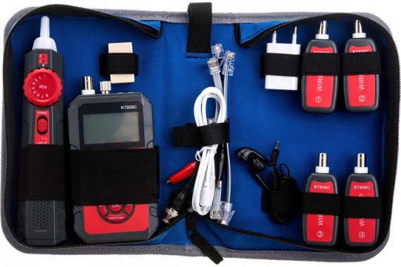 Кабельный LAN-тестер с PoE КВТ KT 858C PROLINE 86210 служит для поиска и трассировки сетевого и электрического кабеля, измерения длины сетевых кабелей CAT 5, CAT 6, BNC, проверки витых пар и телефонных линий, визуализации места повреждения оптоволоконных кабелей. Имеет следующие функции:прозвонка коаксиальных кабелей и витой пары
