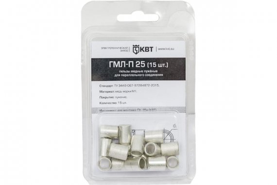 Гильза кабельная ГМЛ-П 25 (15шт) (КВТ) Сечение кабеля (Cu) 25мм² медь