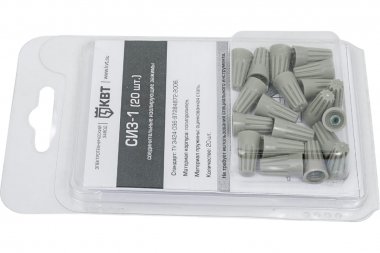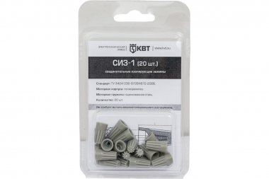 Соединительный изолирующий зажим СИЗ-1 (20шт) (КВТ) серый Суммарное сечение max 2.5мм² Суммарное сечение min 1мм²