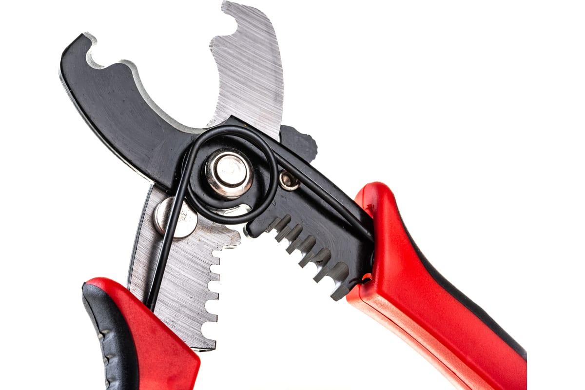 Кабельные ножницы КВТ MC-07 86619 предназначены для резки и зачистки проводов. Инструмент выполнен из качественной хромованадиевой стали, что обеспечивает высокую прочность, надежность и долговечность. Эргономичные двухкомпонентные рукоятки комфортны при работе и имеют блокиратор, что предотвращает открывание и обеспечивает удобную транспортировку.