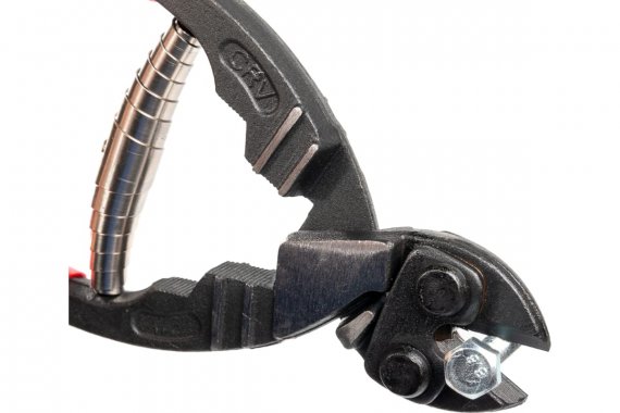 Имеется возвратная пружина для эффективной резки. Благодаря рычажной системе усилия резки достаточно для перекусывания болтов толщиной до 6 мм.