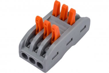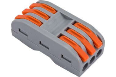 Клемма проходная СМК 222-2413 (КВТ) пластик серый/оранжевый сечение провода 0.08мм²-4мм²