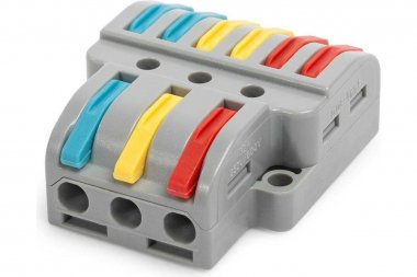 Ответвительная клемма КВТ СМК 222-436 87643 для ответвления любых типов медных проводников: моножильных и многожильных тонкопроволочных.