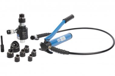 Максимальное усилие: 15 т 3 в 1: гидравлическая голова, комплект перфоформ для пробивки отверстий, гидравлическая помпа со шлангом высокого давления.