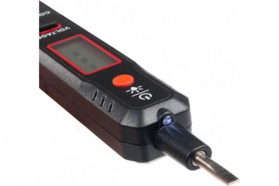 ЖК-дисплей позволяет не только визуализировать индикацию наличия переменного напряжения, но и его величину в диапазоне от 12 до 300 В. Детектор имеет корпус выполненный в виде шлицевой отвертки.
