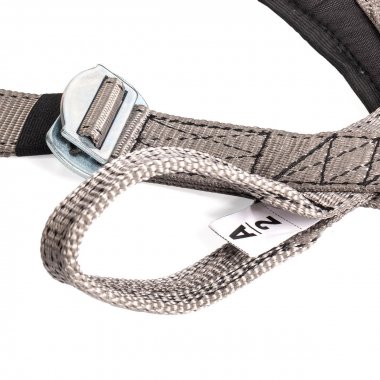 - Наличие вспомогательной ленты с застежкой на груди позволяет быстро отстегнуть и пристегнуть привязь