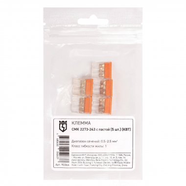 Клемма СМК 2273-245 с пастой (5шт.) (КВТ) Максимальное напряжение: 450В