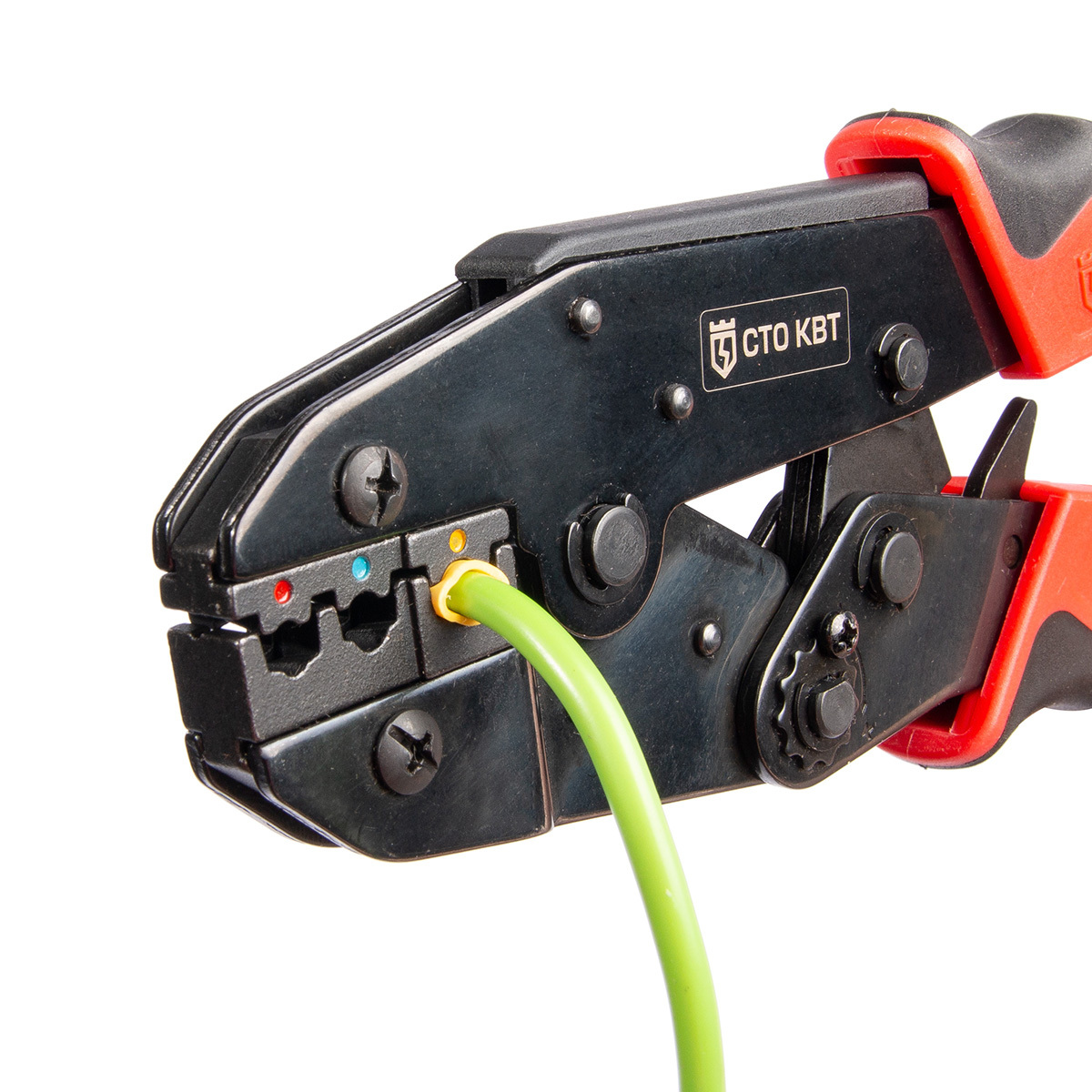 Пресс-клещи СТО-14 серия ПРОФИ (КВТ) Опрессовка неизолированных разъемов и наконечников (автоклемм) под двойной обжим по жиле и изоляции РП-М и РП-П (шириной 2.8; 4.8; 6.3; 7.5 мм), НК, ГС сечением 0.5 - 6 мм²