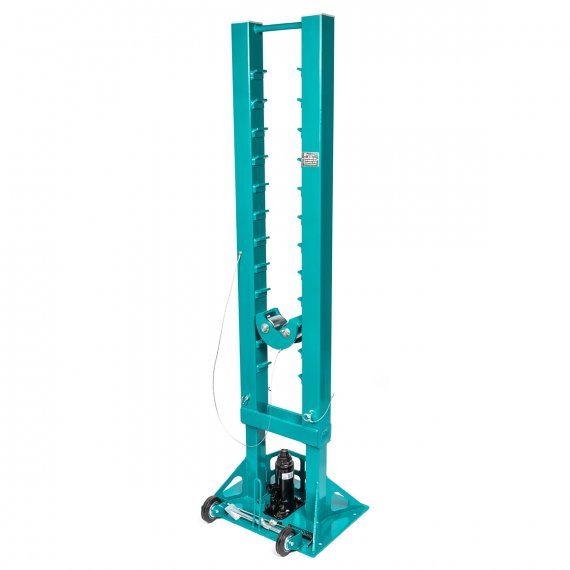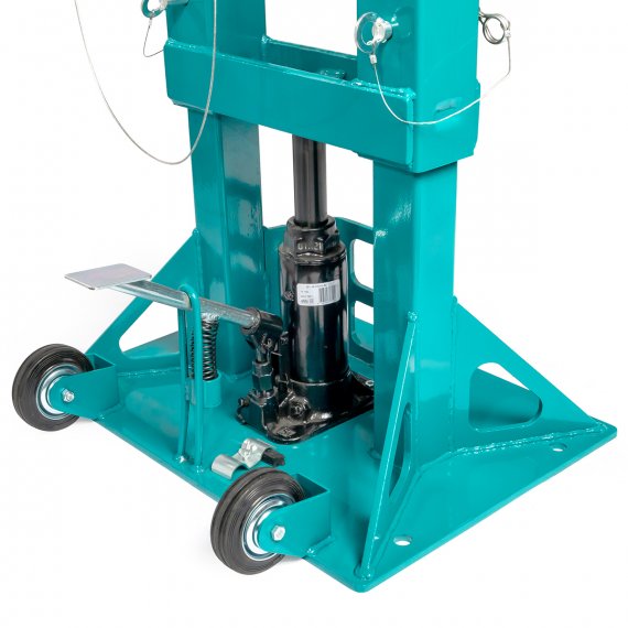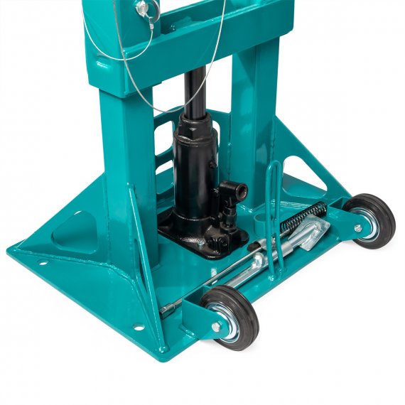 - Стойки домкрата оснащены колесами для более удобного перемещения по поверхности