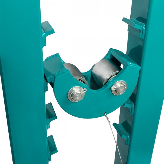 - Стойки имеют 7 фиксированных положений высоты оси, что позволяет работать с кабельными катушками различного диаметра.
