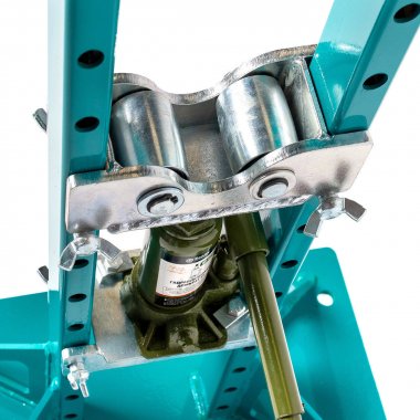 - Стойки домкрата оснащены колесами для более удобного перемещения по поверхности