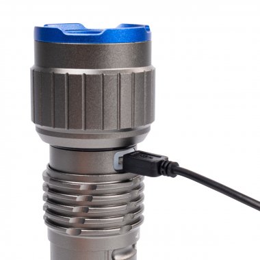 - Кнопка включения из алюминиевого сплава на торце фонарика