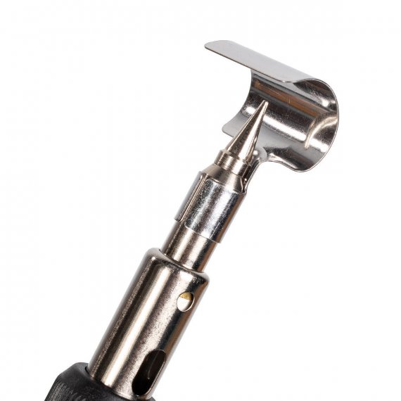 - В комплекте: газовый паяльник, защитный колпачок, насадки для пайки, губка, припой, дефлектор