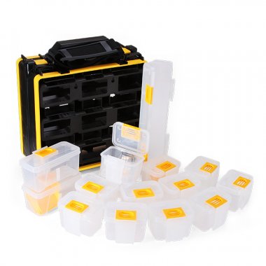 - Пластиковый кейс-органайзер со сменными модулями для хранения мелких деталей