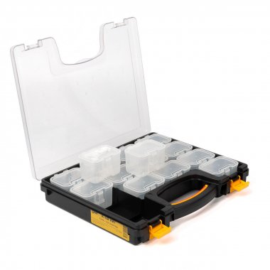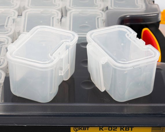 - Пластиковый кейс-органайзер со сменными модулями для хранения мелких деталей