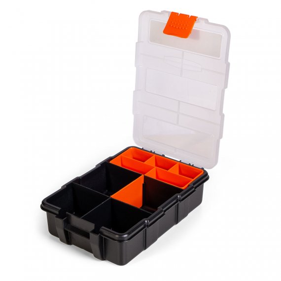 - Пластиковый кейс-органайзер с модульными отделениями для хранения мелких предметов