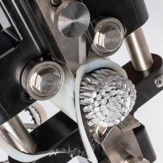 - 2 в 1: снятие изоляции и полупроводящего экрана на высоковольтных кабелях с изоляцией из сшитого полиэтилена ∅ 40–90 мм
