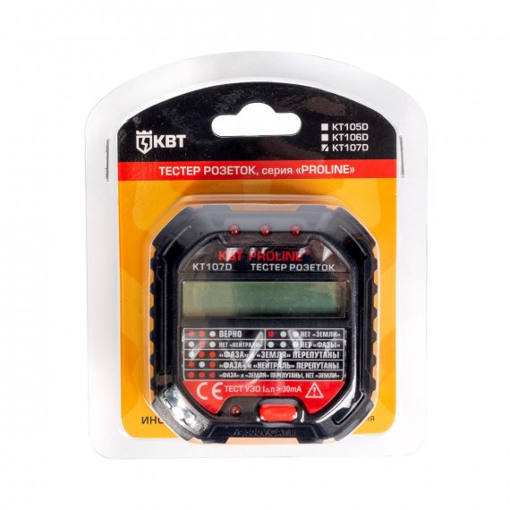 Тестер розеток и УЗО Серия PROLINE модель:  КТ 107D
