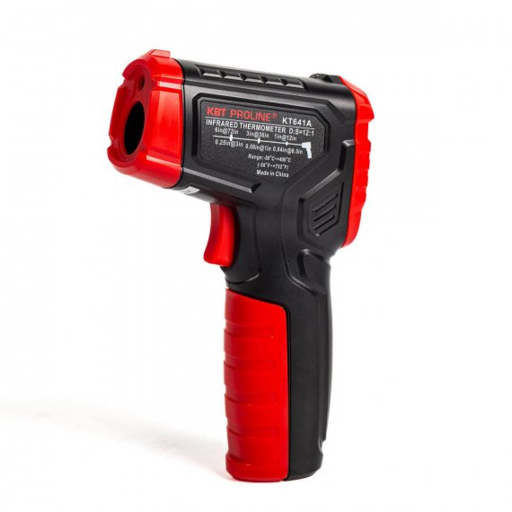 Лазерный бесконтактный цифровой пирометр до 400 °C Серия PROLINE модель: KT 641A Лазерный пирометр с ЖК-дисплеем используется для измерения температуры твердых и жидких тел на расстоянии и в труднодоступных местах