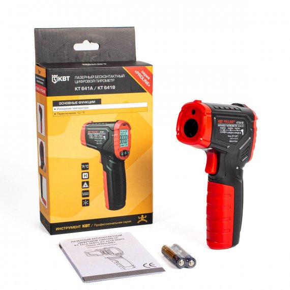 Лазерный бесконтактный цифровой пирометр до 600 °C Серия PROLINE модель: KT 641B Лазерный пирометр с ЖК-дисплеем используется для измерения температуры твердых и жидких тел на расстоянии и в труднодоступных местах