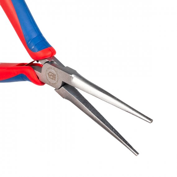 - Удлиненные губки без насечек обеспечивают легкость использования инструмента при работе с мелкими деталями.