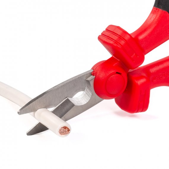 - Выемка на лезвиях позволяет с легкостью резать круглые провода типа ПВС ∅ до 10 мм
